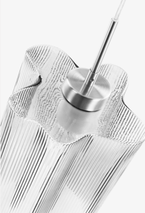 Lampa sufitowa ze szkła, która przypomina kształtem kwiat, a kiedy inspiracją jest przyroda, efekt końcowy zapiera dech. Światło lampy skierowane jest w dół, z dodatkowym blaskiem przedostającym się przez szkło. Na szkle widoczne są strukturalne paski, które tłumią światło i roztaczają śliczny blask. Zawieszona nad stołem EUROPA będzie się prezentować bardzo dekoracyjnie, a czemu nie zwiesić nad dłuższym stołem dwa lub trzy egzemplarze w jednym rzędzie? Mocowanie lampy wykonane jest z metalu, lampa posiada przezroczysty przewód.