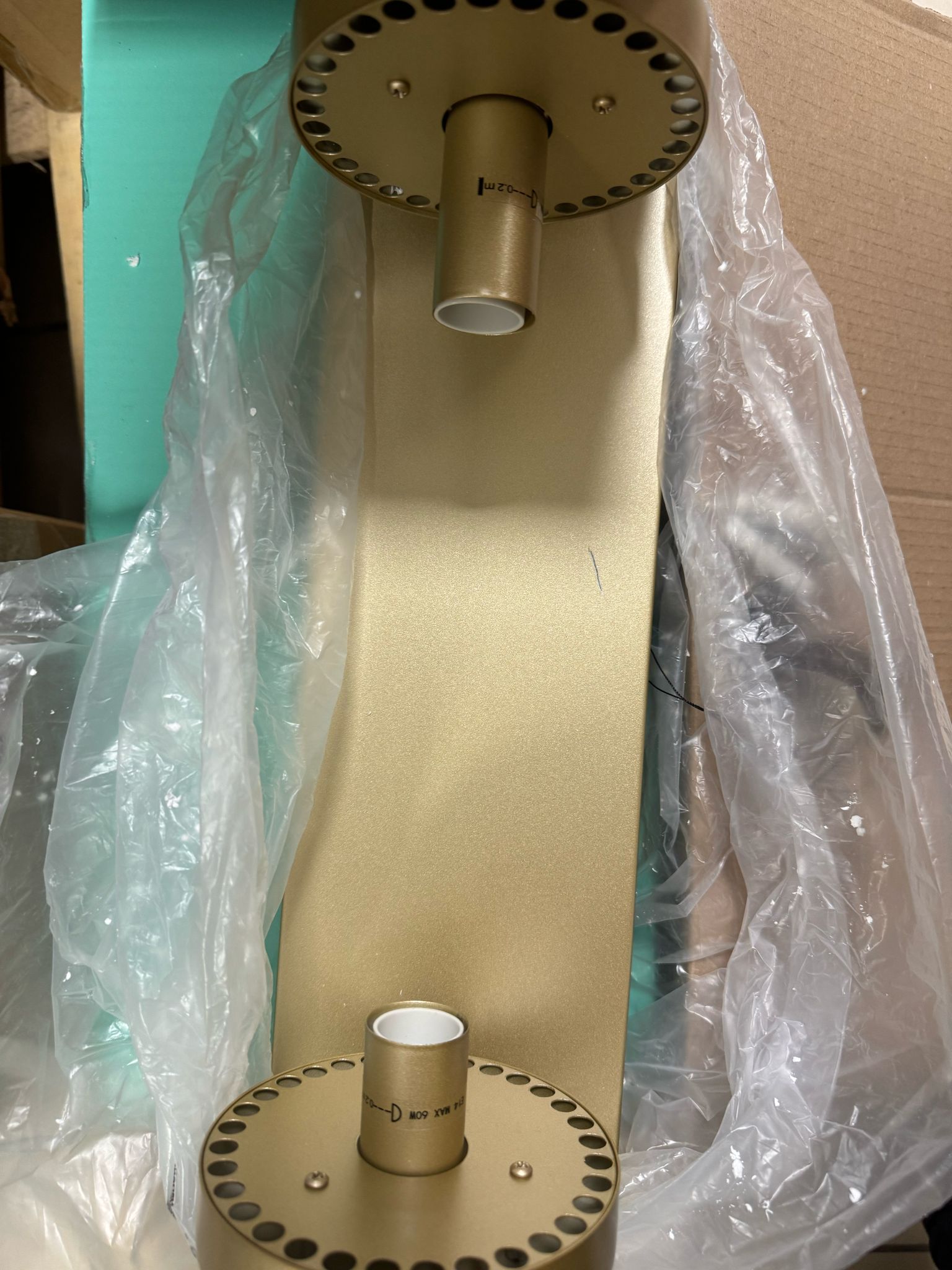 Kinkiet posiada rysę widoczną na ostatnim zdjęciu. Jest to na granicy w której montuje się szklane rurki. Będzie widoczne tylko "z boku"