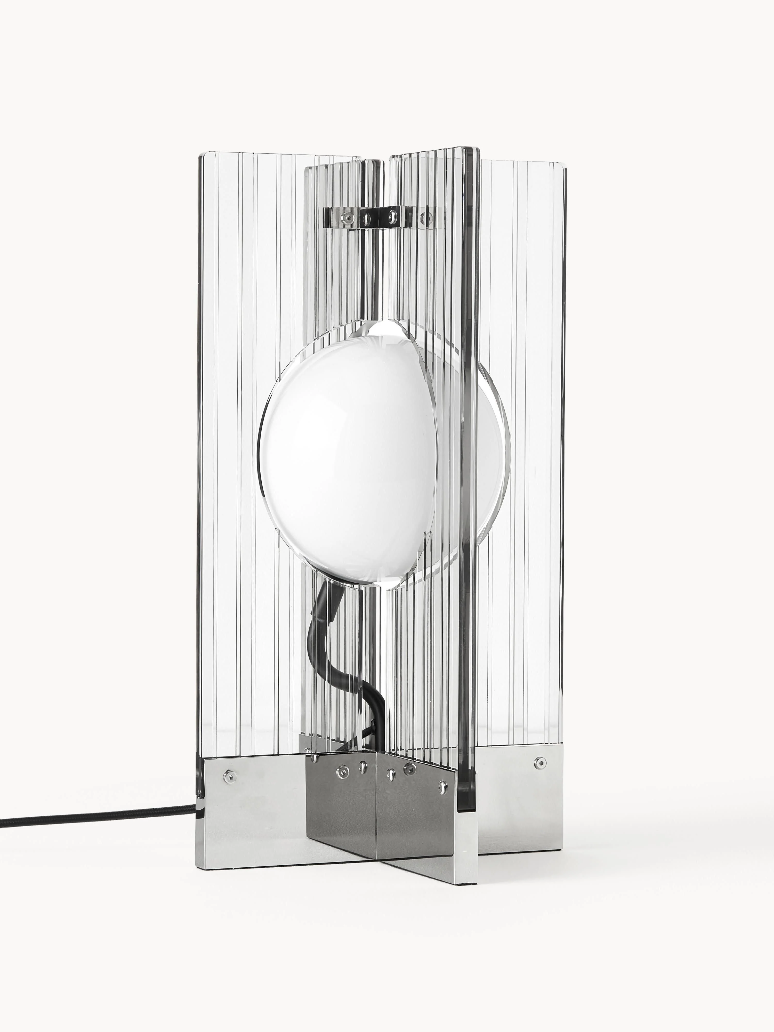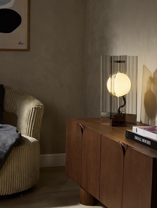 Lampa stołowa MILLS to nie tylko funkcjonalne oświetlenie, ale również wyjątkowy element dekoracyjny, który podkreśli charakter nowoczesnych i stylowych wnętrz. Inspirowana estetyką retro lat 70., zachwyca połączeniem teksturowanego, barwionego szkła oraz eleganckiego, polerowanego metalu. To idealny wybór do salonu, sypialni lub gabinetu.