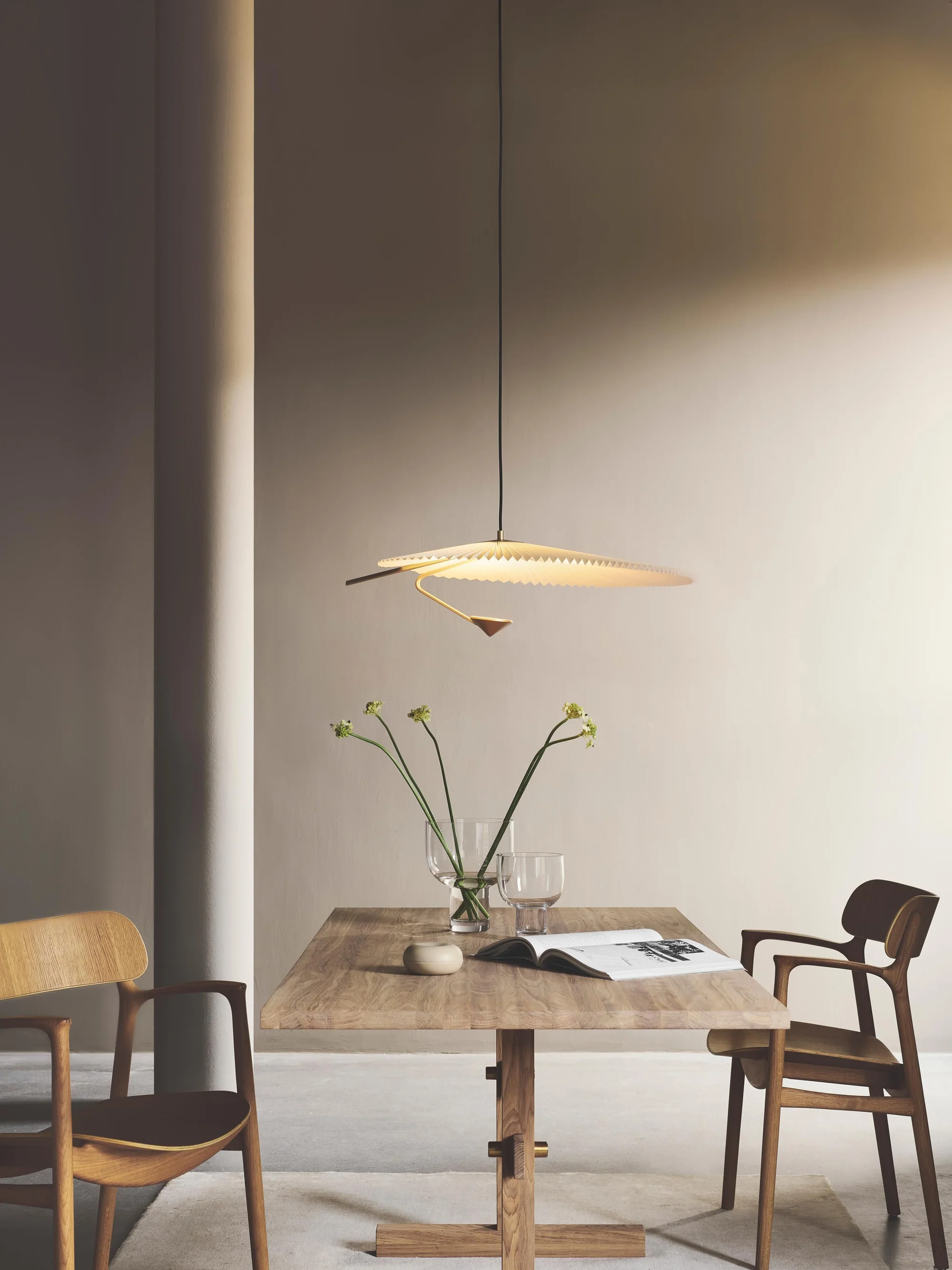 Kolekcja LIRIS jest wynikiem intensywnego procesu projektowania, dokładnych badań i specjalistycznej wiedzy rzemieślniczej. Ucieleśnia istotę Gejst Design poprzez połączenie funkcjonalności i wyrafinowania. Lampa LIRIS została zaprojektowana z precyzją i zaangażowaniem, aby zyskać pozycję wiodącego rozwiązania w zakresie oświetlenia dekoracyjnego. Duet projektowy Thalea Schmalenberg i Kasper Fris Egelund zainspirował się elegancją tradycyjnych papierowych wachlarzy. Jej fascynacja prostą, poetycką ekspresją oraz materiałami i właściwościami interaktywnymi doprowadziła do powstania LIRIS. Oferta obejmuje żarówkę i jest ona zainstalowana w produkcie. Świeci ciepłym odcieniem bieli i ma średnią moc. Produkt posiada funkcję przyciemniania. Możliwość indywidualnej regulacji wysokości.