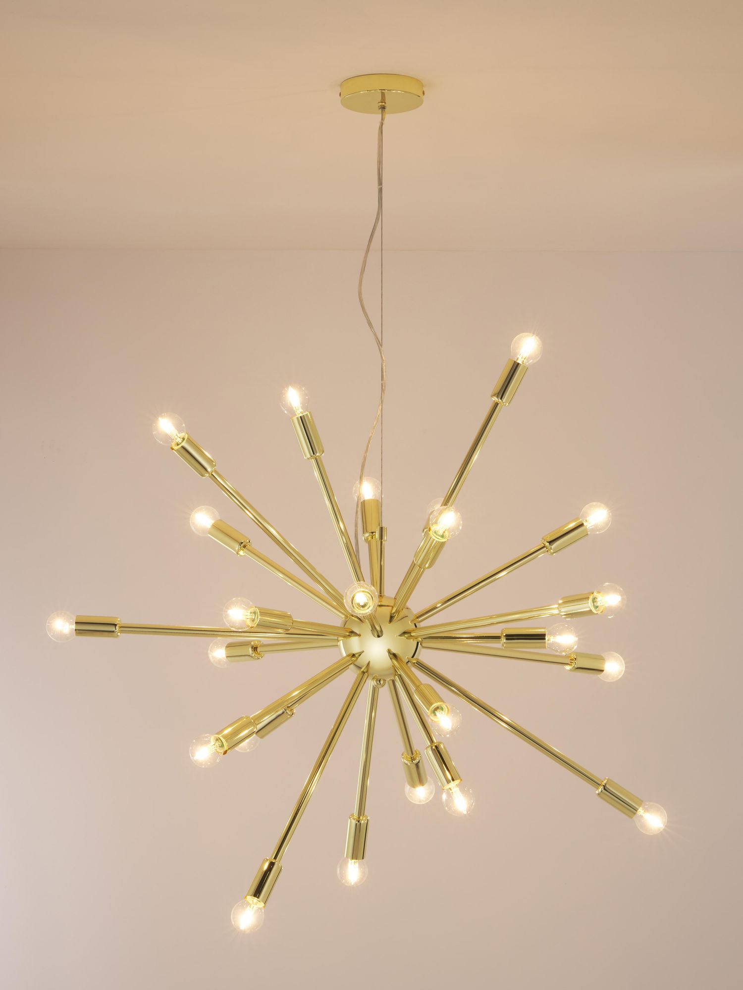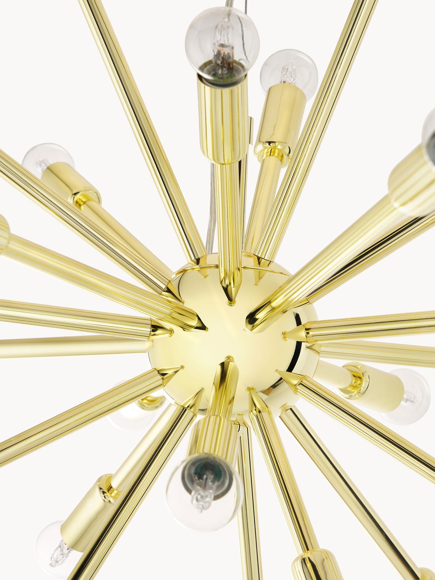 Nasza efektowna lampa SPIKE wnosi do pomieszczenia klimat Space-Age i sprawia, że każde miejsce emanuje ciepłym blaskiem. Jako element centralny przyciąga wzrok, a jej rozmiary sprawiają, że szczególnie pasuje do otwartych i dużych pomieszczeń.