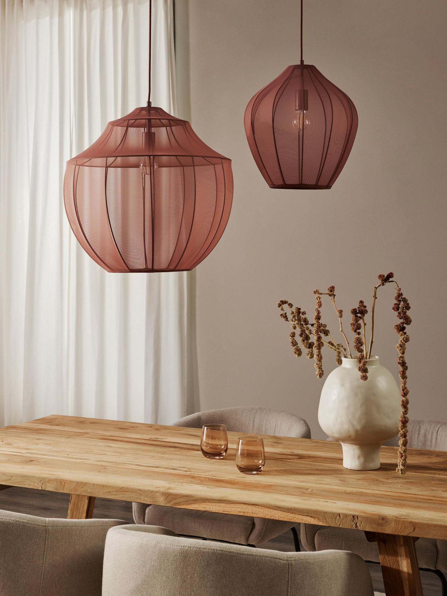 Jak sugeruje nazwa Beau, lampy z tej serii wyglądają szczególnie pięknie. Ich delikatnie prześwitujący klosz z siateczki idealnie komponuje się nad stołem w jadalni, ale także w salonie, czy sypialni. Dodatkowo emitują eleganckie i delikatne światło.