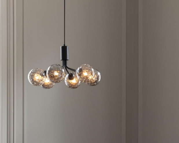 Lampa wisząca Apiales 6 inspirowana jest kwiatami. Projekt składa się ze specjalnie wyprodukowanego klosza, z którego wystaje sześć metalowych ramion niczym łodygi kwiatów, a na nich znajdują się przepiękne, dmuchane szklane kule w pełnym rozkwicie. metal i szklane kule lampy tworzą ze sobą kontrast, nadając lampie nowoczesny i prosty wygląd. Ponadczasowy i minimalistyczny design sprawia, że lampa pasuje do wielu stylów wnętrz i pasuje do większości domów. Seria Apiales czerpie inspirację z kwiatów, co zaowocowało powstaniem serii składającej się z lamp lampy wiszące, kinkiety i żyrandoli. Lampa dostępna jest w różnych zestawieniach kolorystycznych.