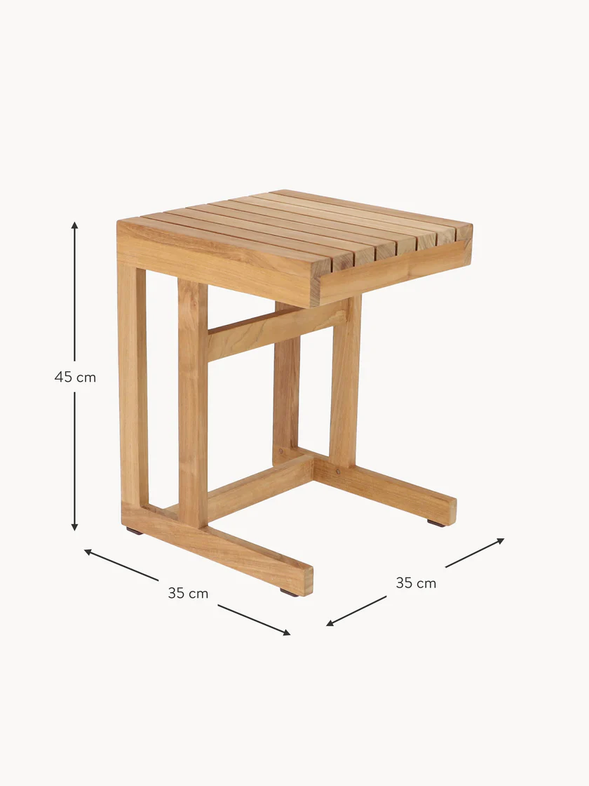 Stolik ogrodowy CERO to doskonały towarzysz na relaksujące letnie dni. Jego prosta konstrukcja i praktyczny kształt sprawiają, że jest niezwykle wszechstronny. Może służyć jako półka na książki lub magazyny, a także jako stolik na orzeźwiające napoje. To niezastąpiony element wyposażenia ogrodu czy tarasu. Wykonany z solidnego i trwałego drewna tekowego, stolik zachwyca nie tylko eleganckim wyglądem, ale także wysoką odpornością na warunki atmosferyczne, co czyni go idealnym wyborem do użytku na zewnątrz.