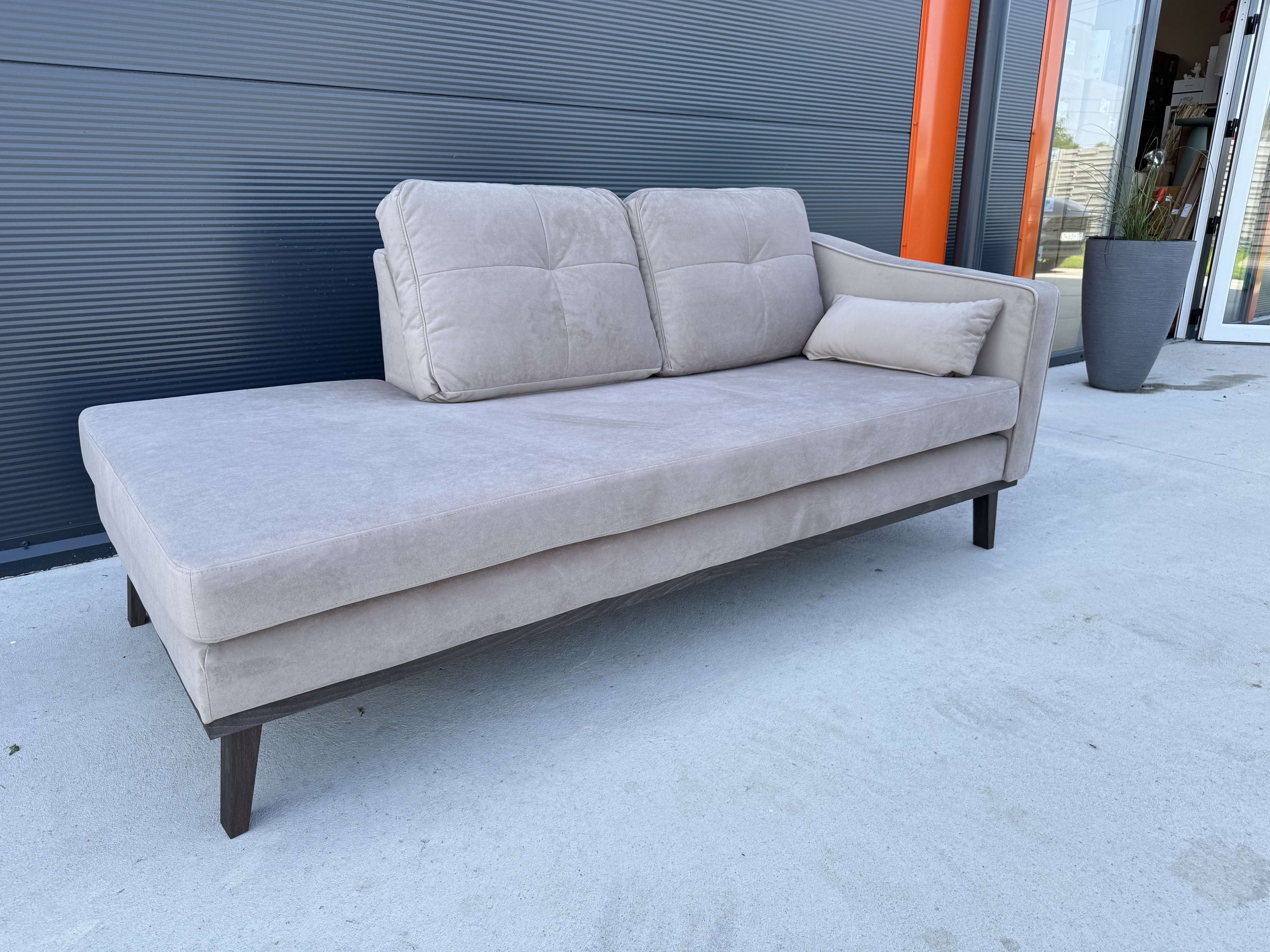 Nowoczesna leżanka typu daybed to idealne rozwiązanie dla osób, które cenią minimalistyczny design i wygodę codziennego użytkowania. Inspirowana stylem mid-century modern, doskonale sprawdzi się jako sofa dzienna do salonu, strefy relaksu lub eleganckiego gabinetu.