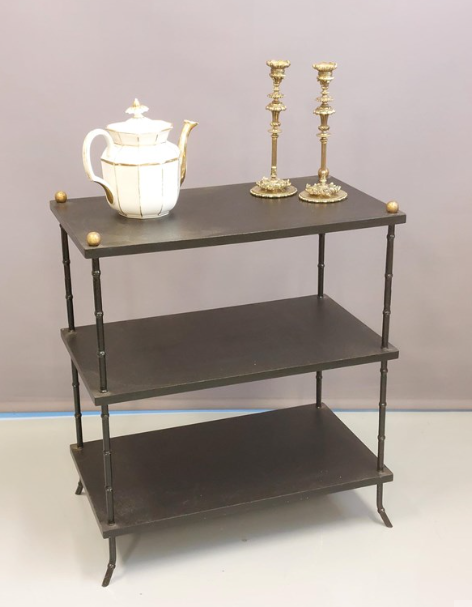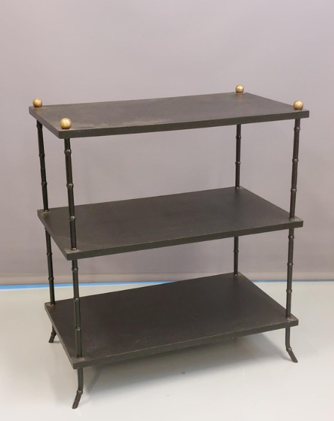 Półka wykonana z imitacji bambusa, trzypoziomowa, lakierowana.