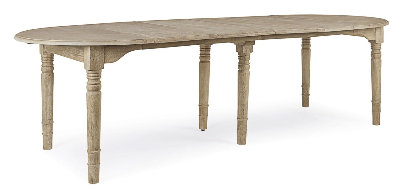 Rozkładany stół BEDFORD to klasyczny mebel o przyjemnej, chłodnej barwie, wykonany w całości z solidnego drewna dębu europejskiego. Powierzchnię pokryto wodną farbą z efektem postarzenia, a następnie zabezpieczono wykończeniem woskowym, co nadaje stołowi szlachetny, naturalny wygląd.