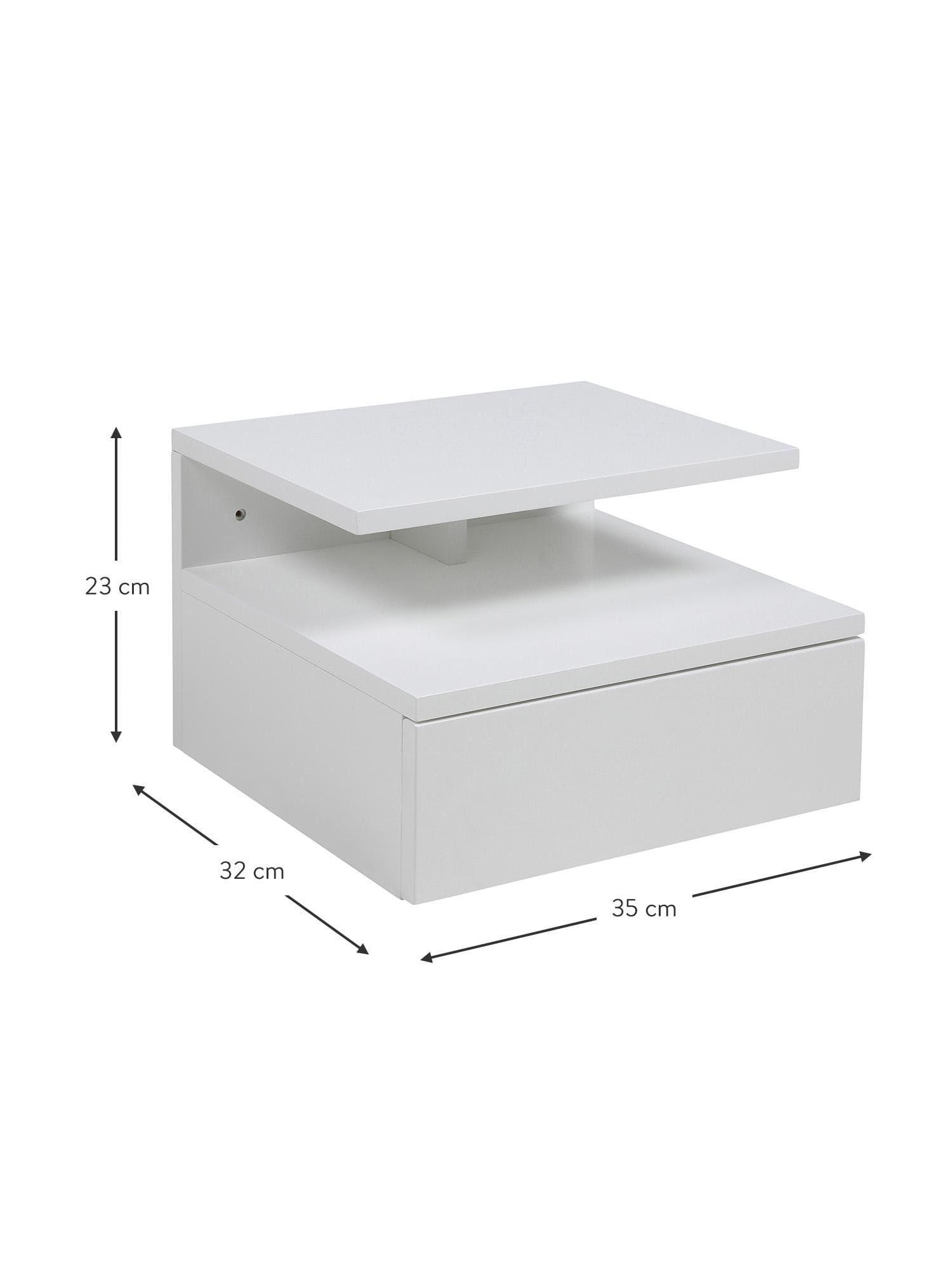 Stolik nocny posiada małą szufladę oraz otwartą przegródkę.