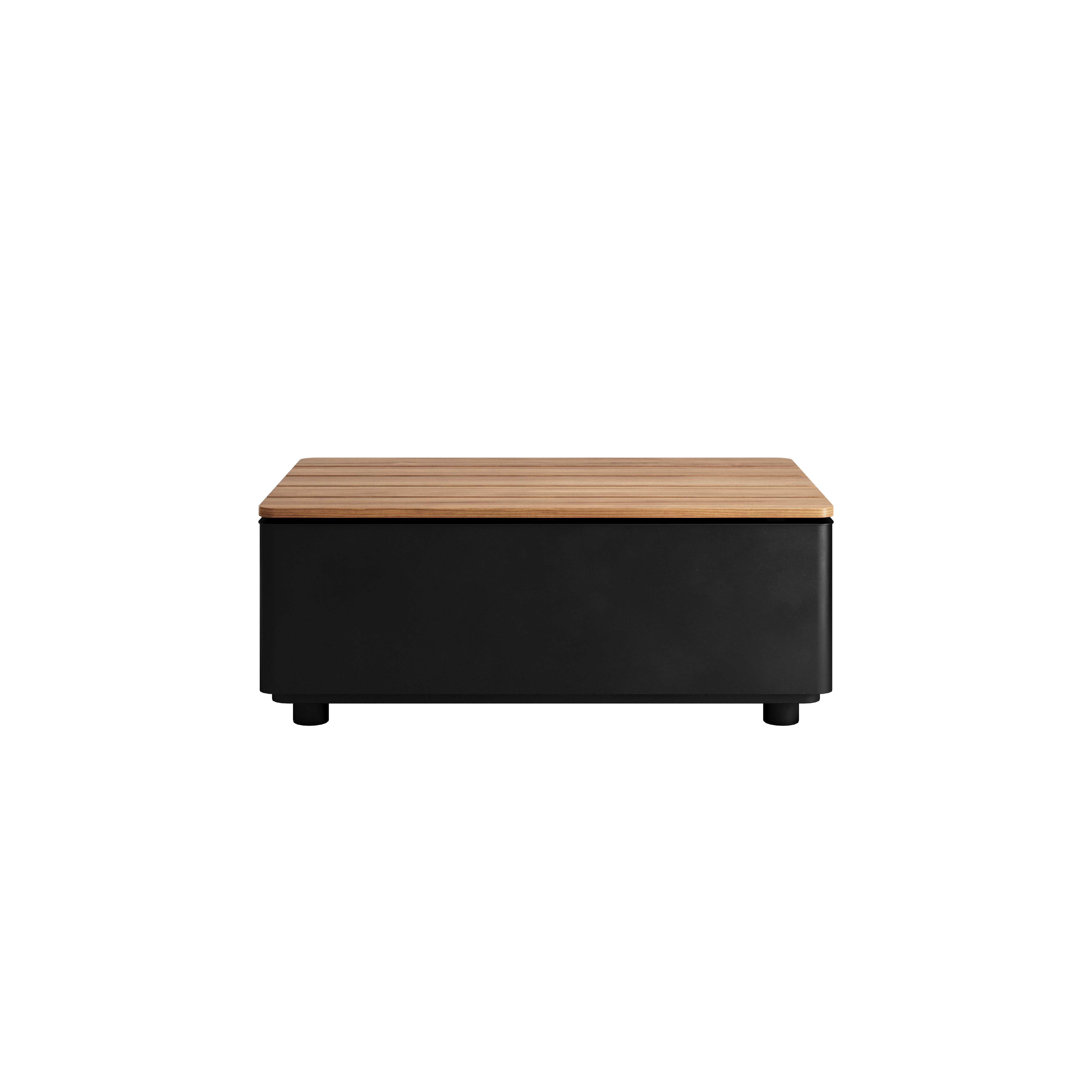 stół do przechowywania Patio SAC Kit pomiędzy dwoma modułami sof, tworzysz stolik boczny, z którego mogą korzystać dwie osoby jednocześnie. Ten układ jest szczególnie świetny, jeśli chcesz cieszyć się przekąskami i filiżanką kawy podczas miłej pogawędki.