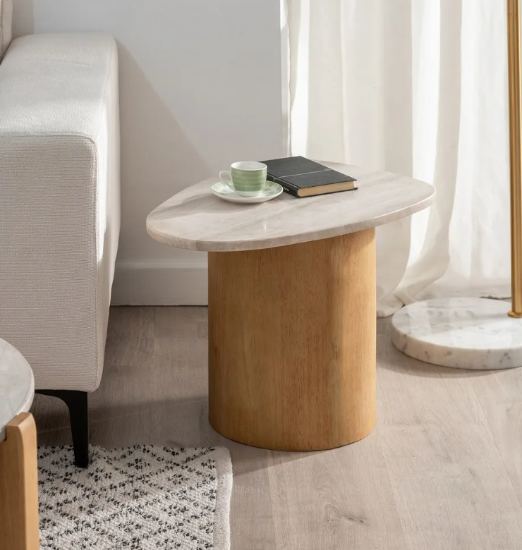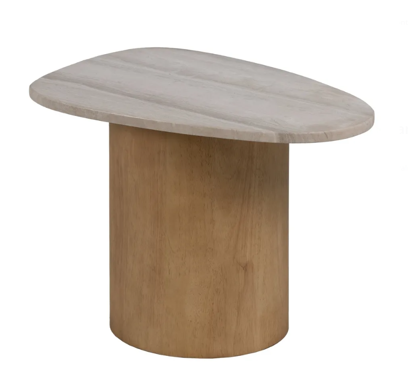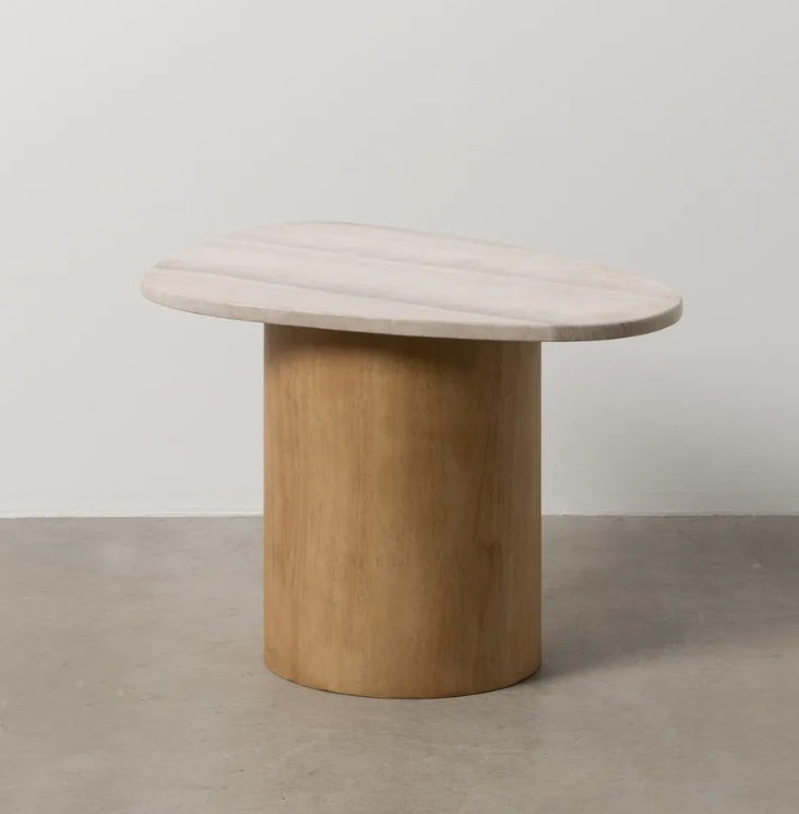Piękny stolik boczny, drewniana podstawa i blat z naturalnego marmuru.