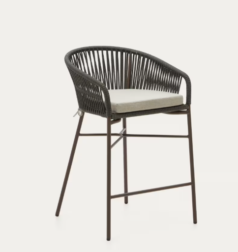 Do kuchni lub na świeże powietrze, taboret Yanet nadaje modny wygląd dzięki ręcznie plecionemu siedzisku z liny w kolorze zielonym, który jest super modny, oraz materiałom odpowiednim do użytku wewnątrz lub na zewnątrz pod zadaszeniem