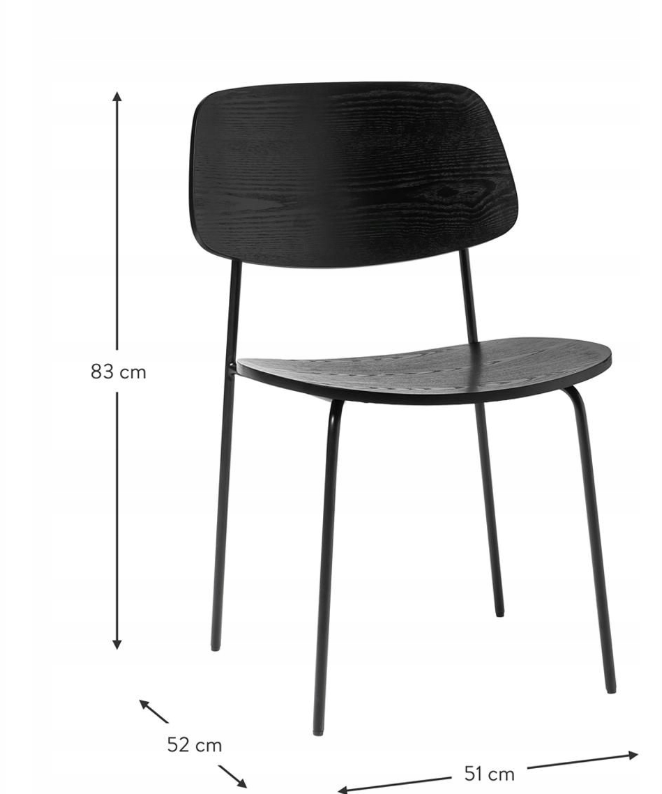 Siedzisko: sklejka z forniru jesionowego, lakierowana