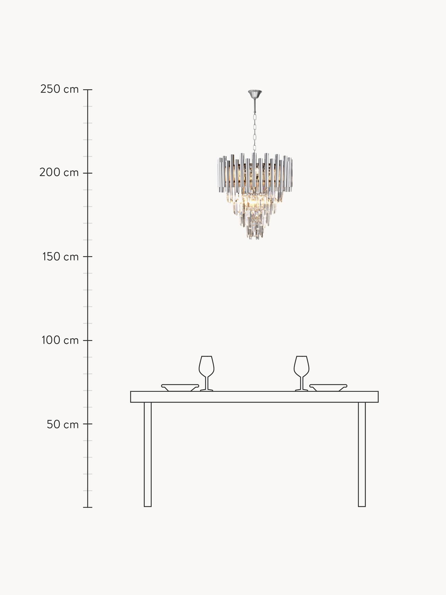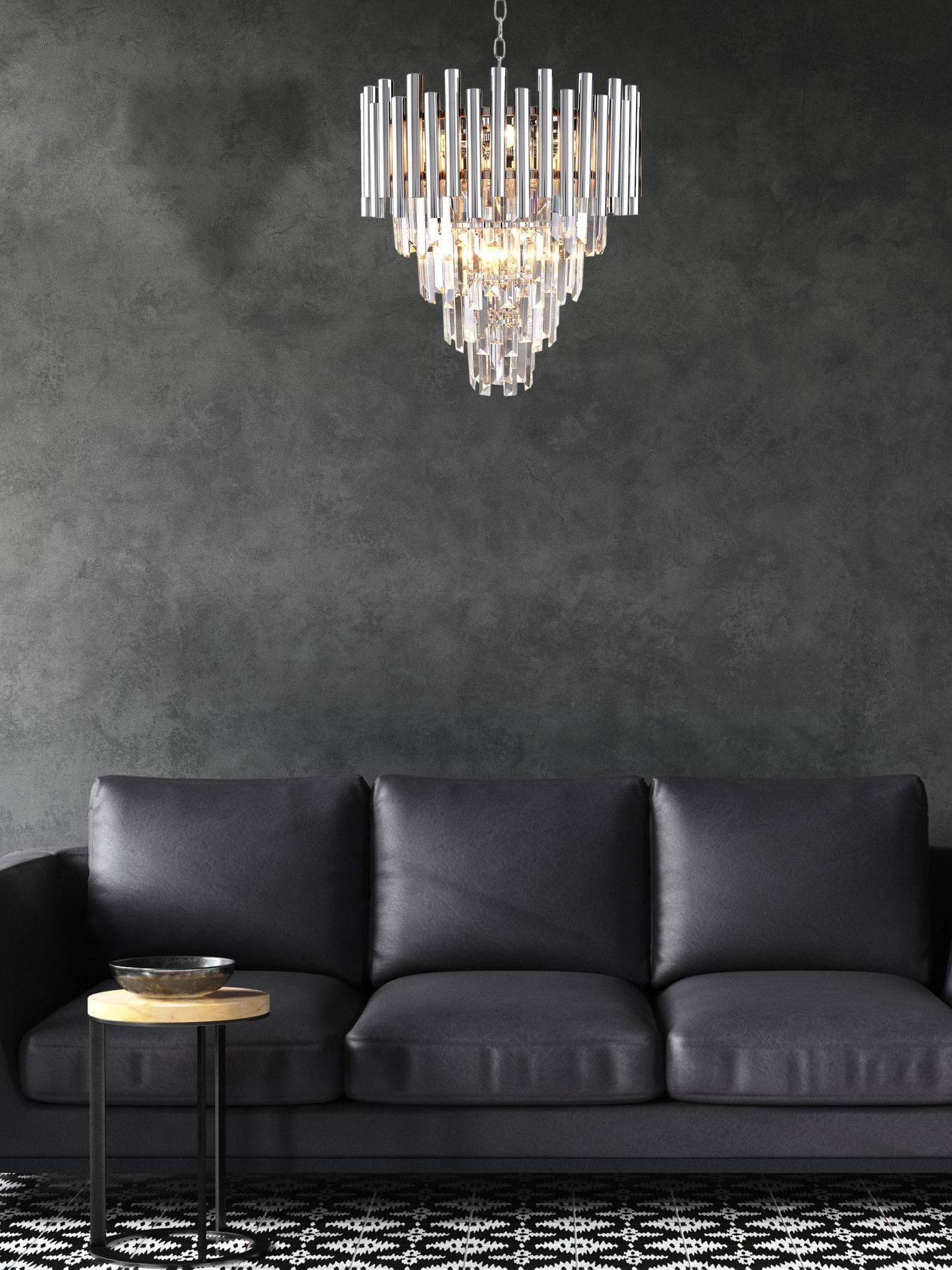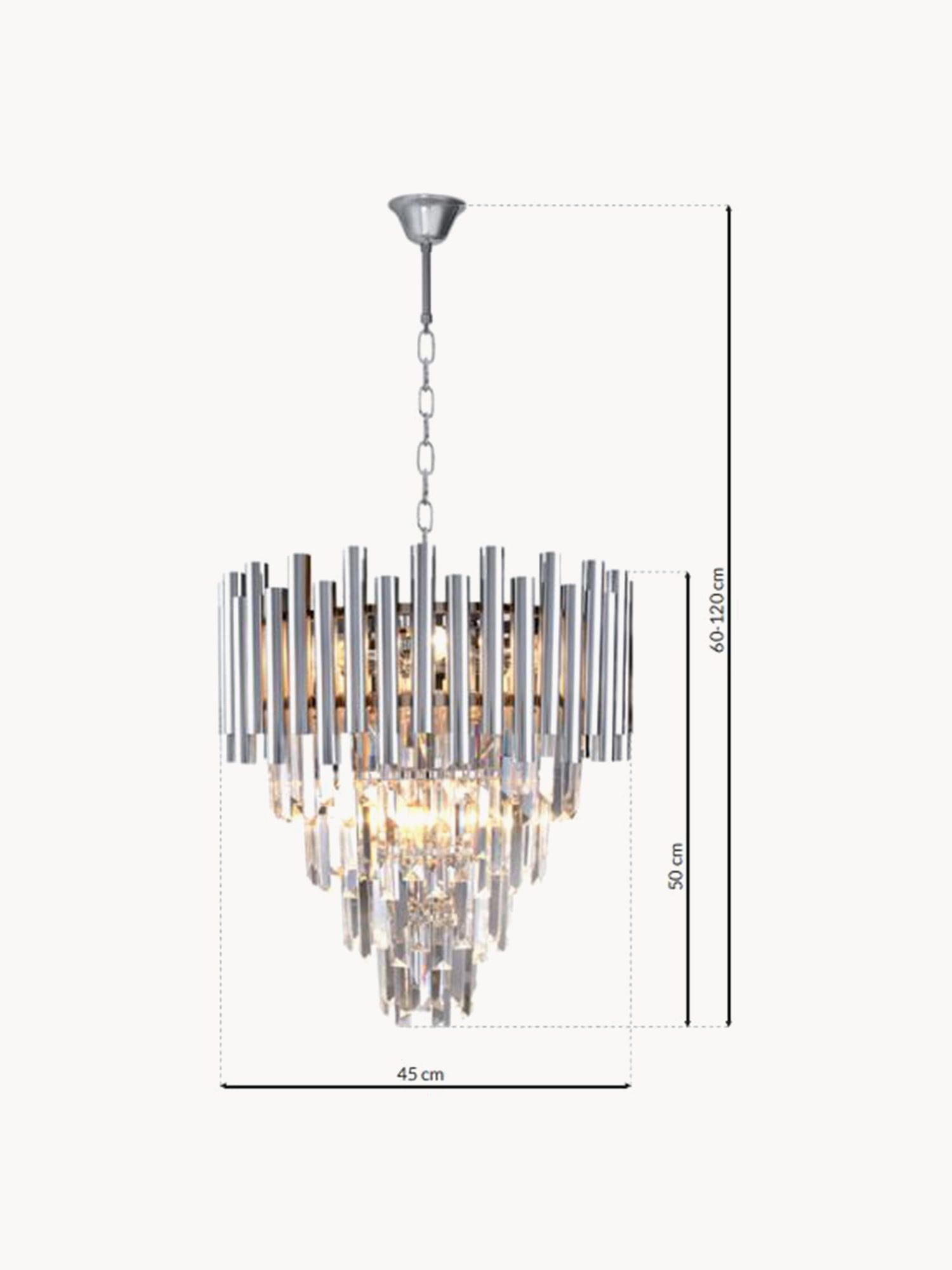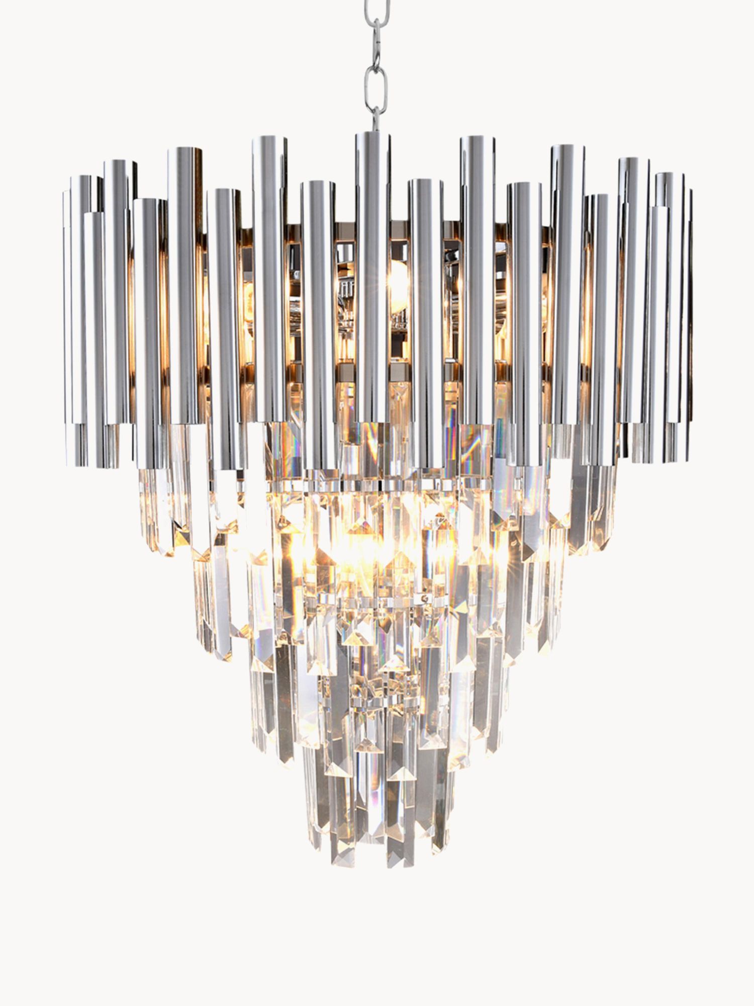 Designerski żyrandol w kolorze chromu ze szklanymi kryształkami