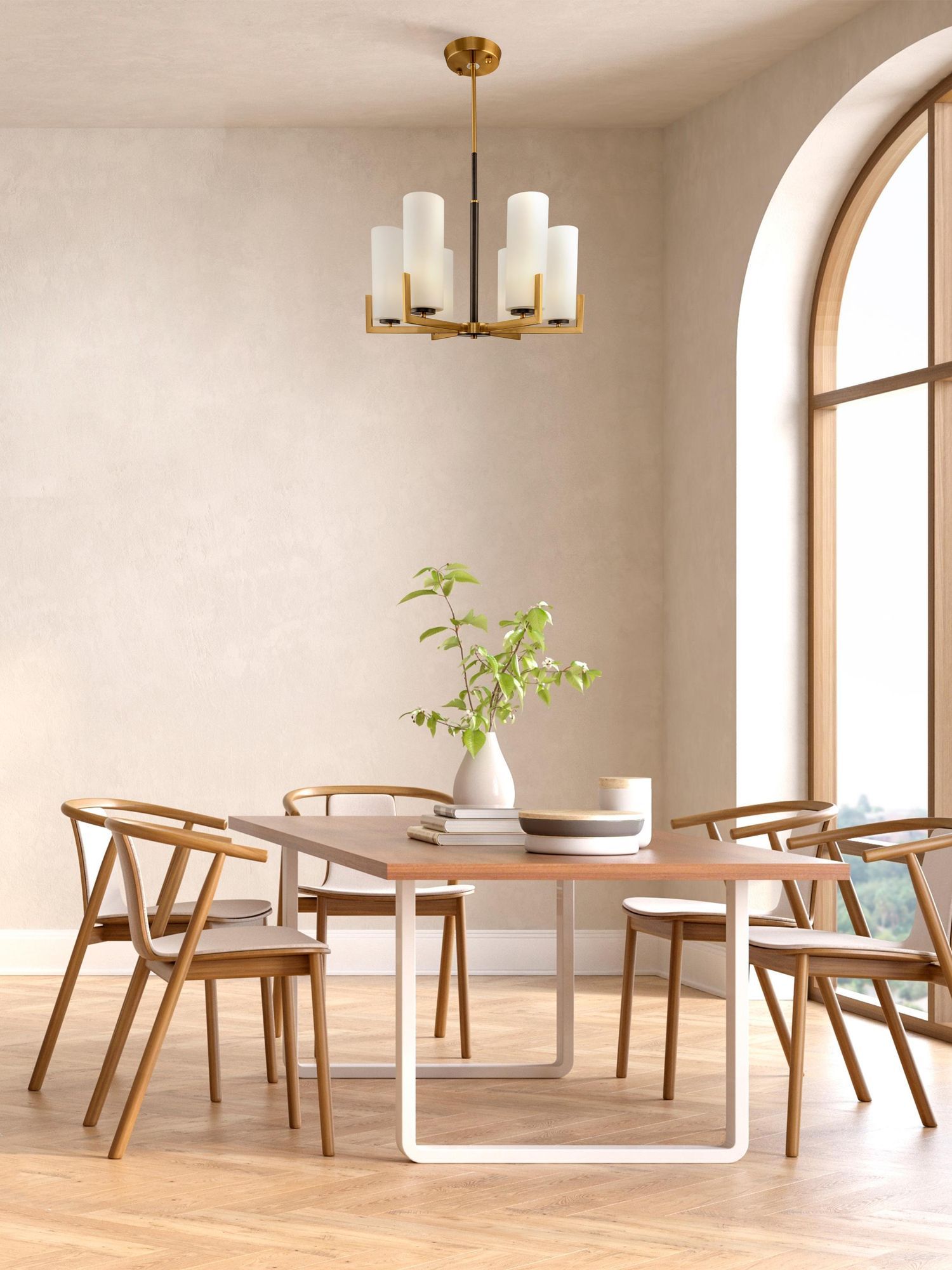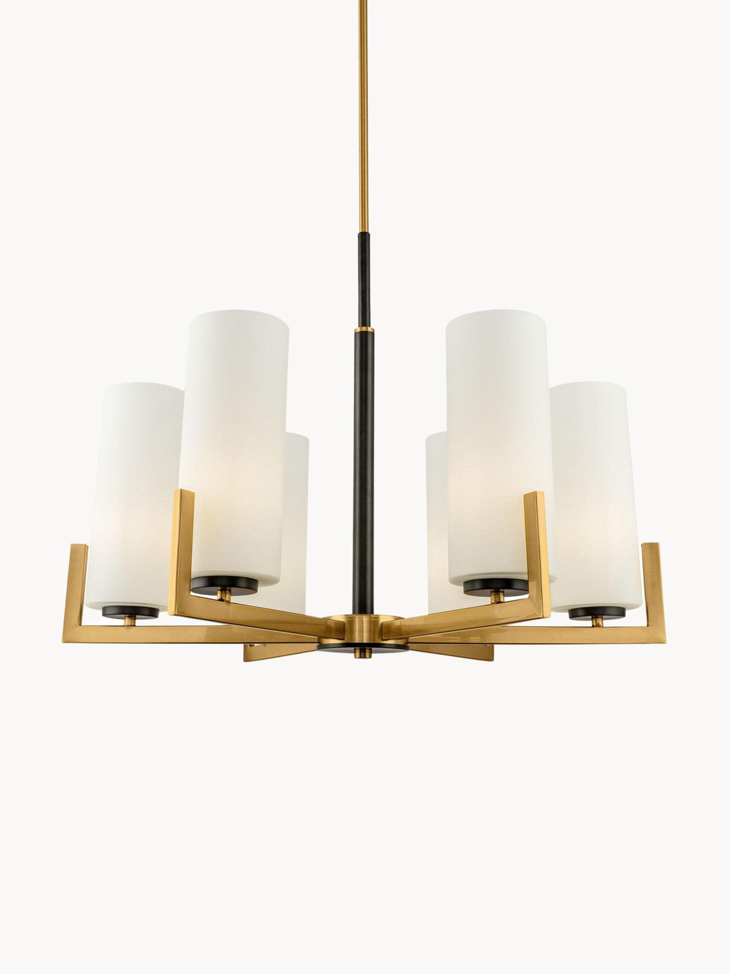 Duży żyrandol z cylindrycznymi kloszami ze szkła w białym kolorze